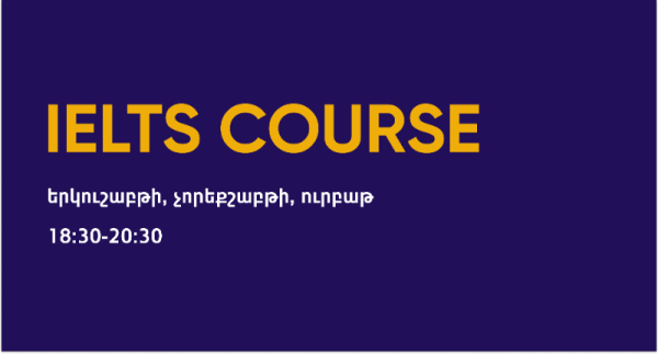 IELTS դասընթացի նպատակն է պատրաստել ուսանողներին անգլերենի IELTS ակադեմիական թեստին։ Այս դասընթացի ընթացքում ուսանողները ձեռք կբերեն այնպիսի պրակտիկ խորհուրդներ, որոնք կօգնեն զարգացնելու քննության չորս հատվածներում հաջողության հասնելու ռազմավարությունը։